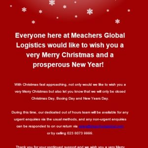 Everyone here at Meachers Global Logistics would like to wish you a very Merry Christmas and a prosperous New Year!